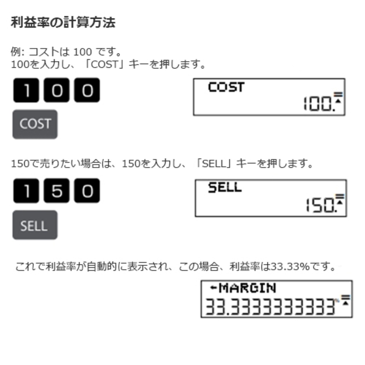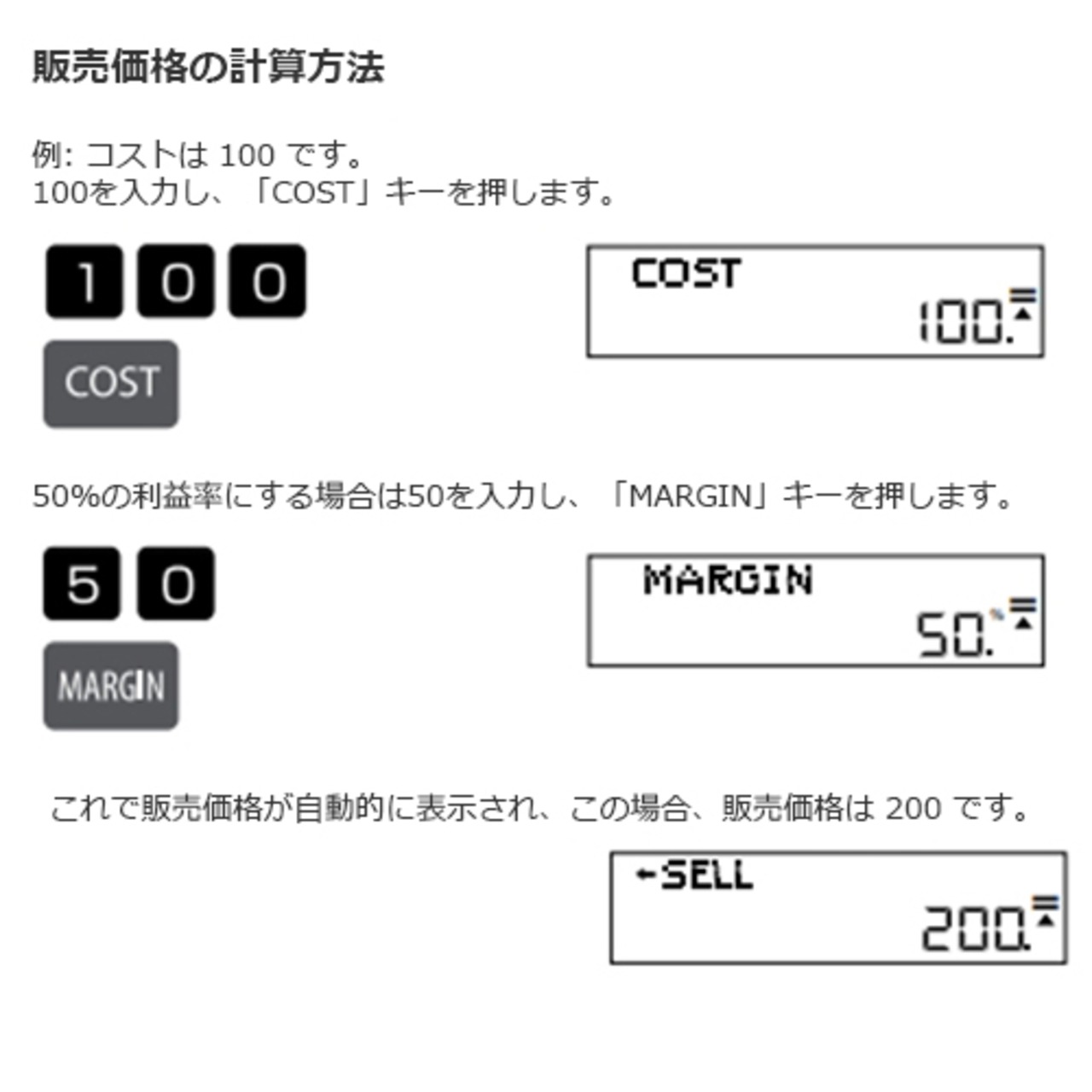 税金計算(TAX+、TAX-)や割合計算(%)など、日常的に必要とされる一般的な機能に加え、、コスト、売価、利益率(MARGIN)の計算が直感的に行える機能キーも装備していて、ビジネスシーンでの利用に最適化しています。また、堅牢な造りと、使いやすいキーレイアウトは、長時間の使用にも耐えうる設計となっています。